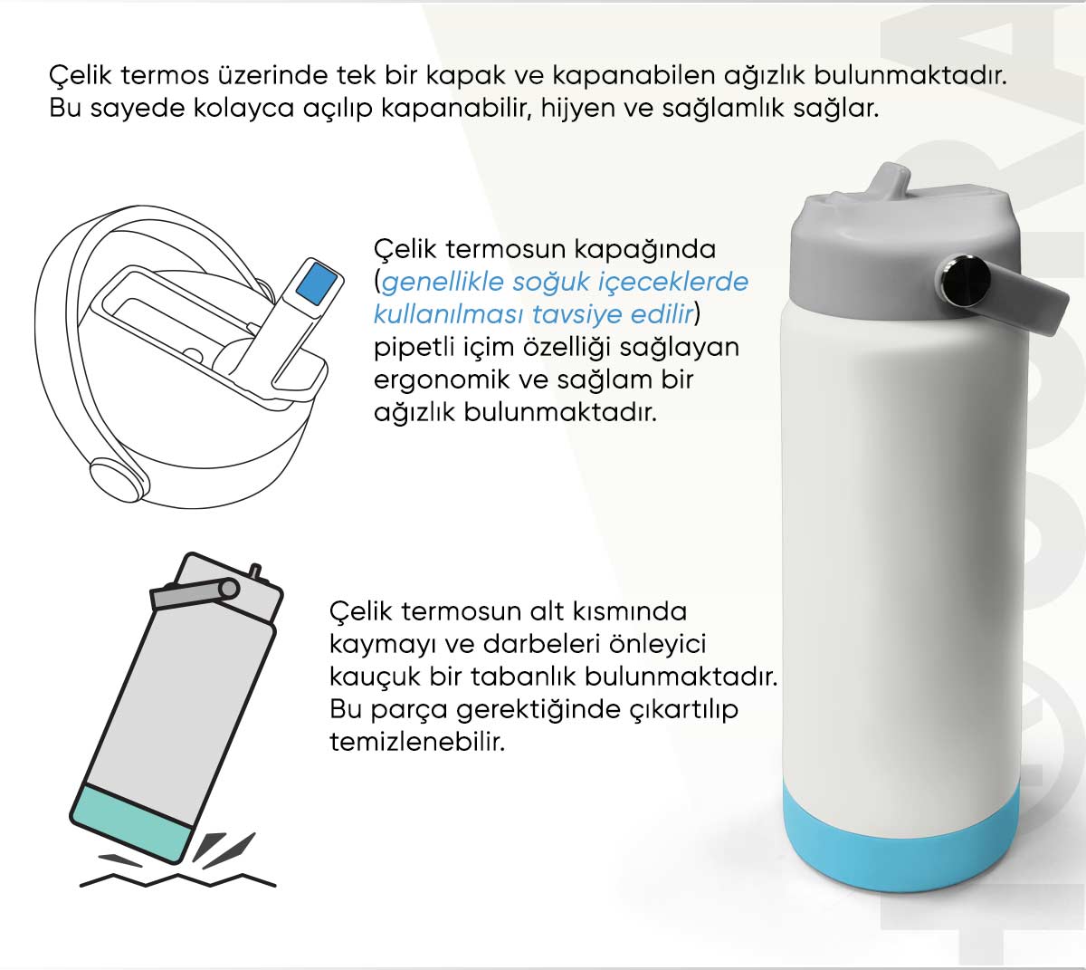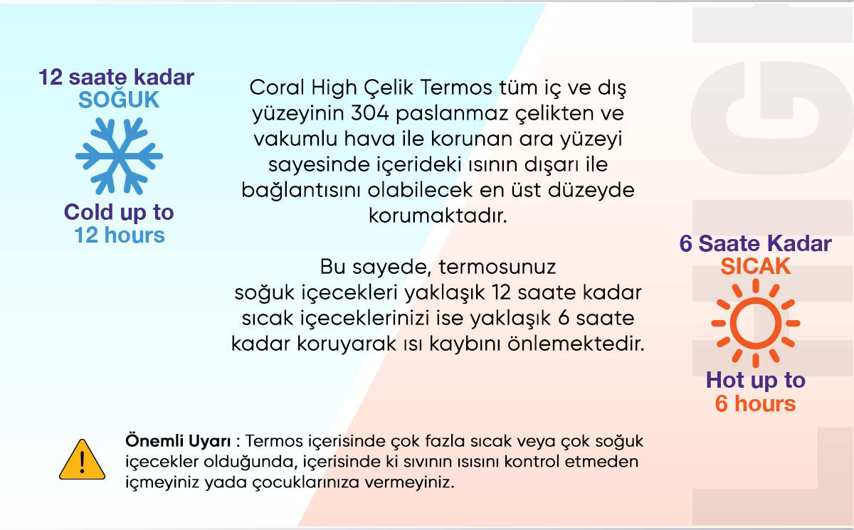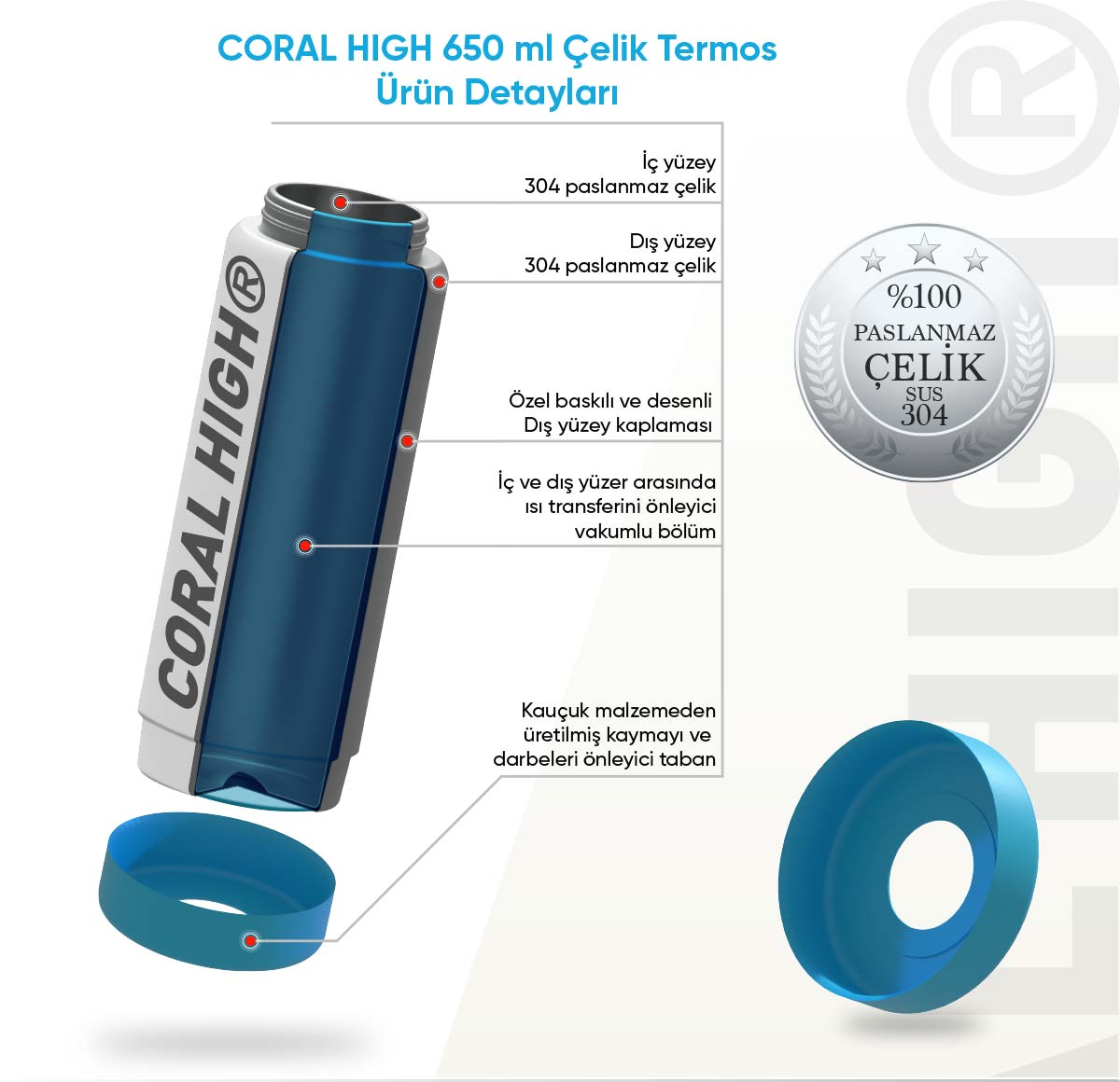 Coral High Su Yeşili Desenli Katlanır Ağızlıklı Çelik Termos 650 ml 38371